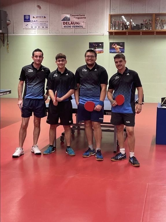 Un score un peu plus serré mais défaite quand même face à Esvb Tennis de Table Bauné  (11/9/9/8) et son capitaine Dany Ping    qui n’a pas trop râlé à la table 😂