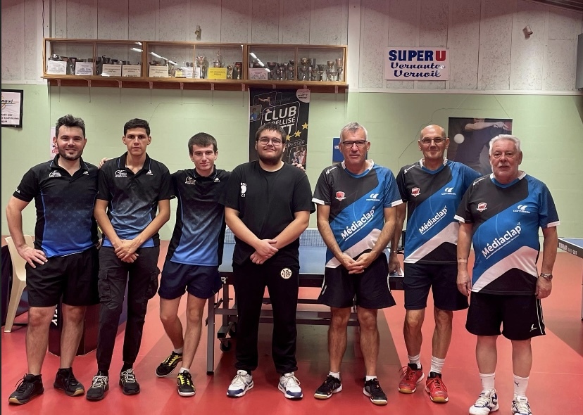 Départemental 3 Cette équipe de Nico (8/7/7/7) rencontrait les voisins et copains de Entente Vivy Gennes Tennis de Table - EVGTT (11/8/7/6). Sur le papier nos adversaires du soir étaient sans contestation possible plus forts que nous… Mais c’était sans compter sur nos warriors. Emmenée par un Loïck impérial notre équipe réussit à s’imposer 12 à 6 et décroche ainsi sa 1ère victoire en D3 !! Bravo messieurs. On retiendra la très belle perf de Loïck sur Christian (11) Et on retiendra aussi l’après match très sympa comme toujours avec ces adversaires 😊 Loïck 4 pts, Ahmet 3,5 pts, Alexandre 2,5 pts et Nico 2 pts