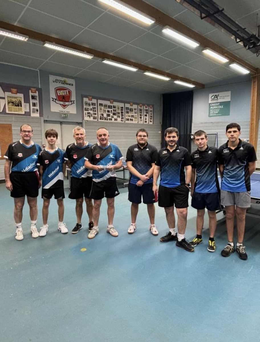 La D3 de Nico (8/8/7/7) en déplacement chez nos voisin de Entente Vivy Gennes Tennis de Table - EVGTT (11/10/7/6) Ce sont les Tom Cruise du ping… Ils l’ont réussi la mission impossible 😊 Obtenir un match nul sur une équipe nettement supérieure. On n’aurait pas misé 1 kopeck sur eux (en plus le Kopeck ce n’est pas trop à la mode). Mais ils l’ont fait 😊 9-9 Ils ont commencé par empocher les 2 doubles et ils ont tenu derrière ! trop fier ! Bravo On était même à un chouilla du véritable exploit ! Nico, Loïck et Ahmet 2,5 pts, Alexandre 1,5 pt Merci pour l’accueil 😊