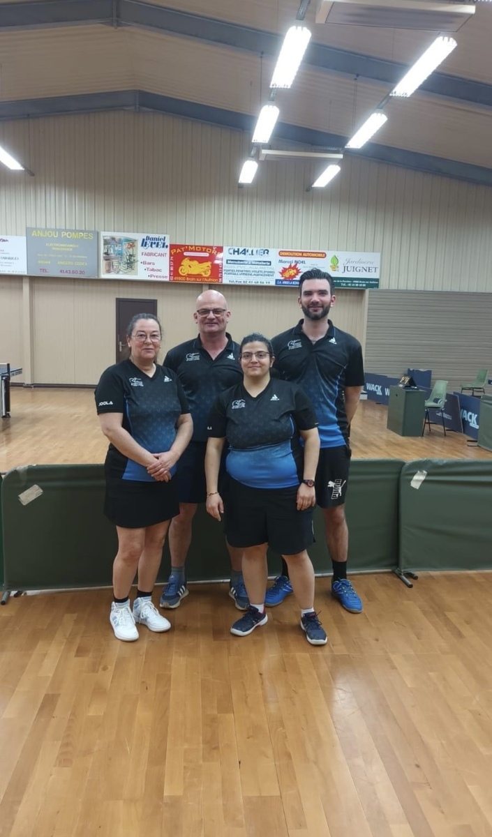 La D4 de Joce emmenée par Alicia (6/5/5/5) en déplacement face à Andard (6/5/5/5) Ça y est !!! elle l’a fait !! BRAVOOOOOOOOO le 1er point officiel d’Alicia en championnat 😊 Il y avait déjà eu un double… Mais en simple c’est le 1er … d’une longue série 😊 Bravo aussi à Rodolphe avec 2 points ! Le fameux picot de Christine a aussi frappé pour marquer 2 pts. Toutes ces bonnes nouvelles n’auront pas suffi, défaite 13-5. C’est ce qu’on appelle une défaite encourageante 😊
