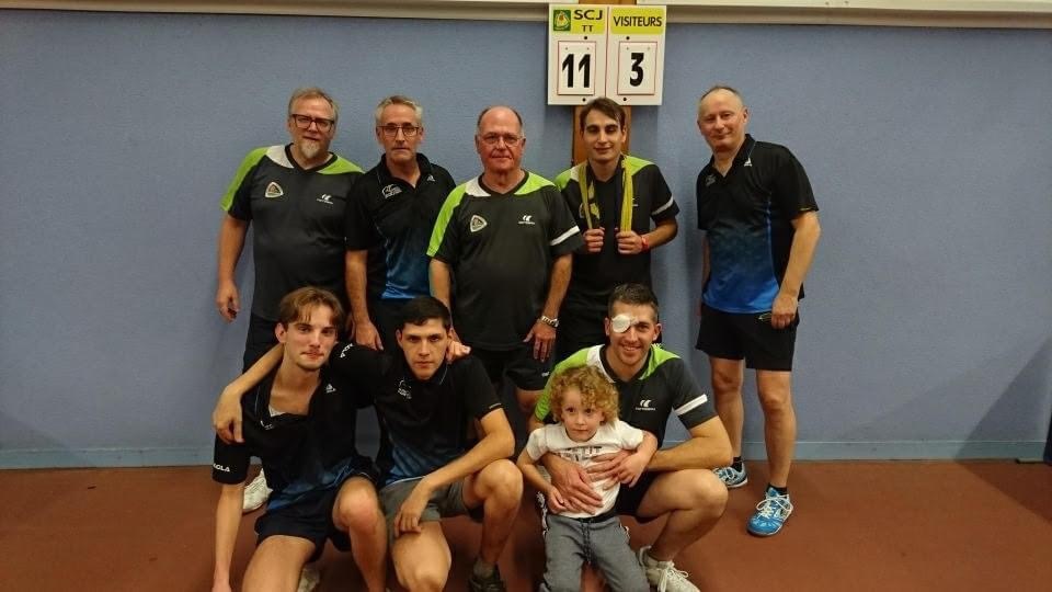 La R3 affaiblie (14/13/11/7) en déplacement à Jard Tennis de Table qui s’était renforcé (19/15/14/13) Aucun suspens, et pour être honnête on n’attendait pas grand-chose de ce match 😊 Un grand merci à Thierry et à Ahmet d’être venu nous aider 😊 On notera d’ailleurs la très belle perf de Thierry à 15. Défaite 11-3 Super bonne ambiance après le match 😊 merci pour ce moment ! Thierry et Clément 1,5 pt L’équipe est 6ème , il reste 3 matchs pour assurer le maintien avec nos meilleurs joueurs 😊