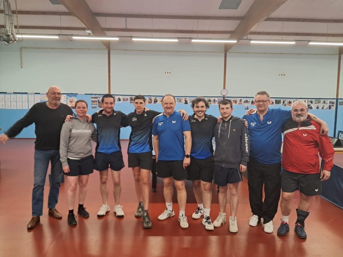 La D3 (8 /8 /7/7) en déplacement BTTA (8/8/7/5) A écouter l’équipe il ne faudrait parler que de l’après match tellement ils ont passé une bonne soirée avec les copains d’en face 😊 C’est aussi ça le ping, l’amitié, la rigolade après s’être bagarré à la table ! Au niveau du jeu large victoire des nôtres 14-4 emmené par un Alex, et un Ahmet on fire 😉 La particularité dans cette équipe c’est que régulièrement des joueurs différents prennent le lead de l’équipe… l’homogénéité c’est peut être ça le secret de la réussite 😊 Ahmet et Alexandre 4,5 pts, Nico 3 et président mouillé (private joke 😊) 2
